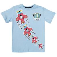 Футболка для мальчика прямого силуэта, с втачным коротким рукавом. На передней половинке принт "Самолётики". Круглый вырез горловины с трикотажной резинкой нежно обрамляет шею. Горловина спинки внутри обработана настрочной планкой из киперной ленты контрастного цвета. Низ изделия и рукавов обработан швом вподгибку двойной строчкой.Размер 92: длина- 39 см, обхват груди- 59 см.