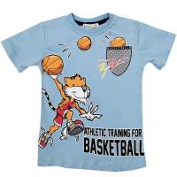 Футболка для мальчика прямого силуэта. Выполнена из хлопкового трикотажа - кулирное полотно. Декорирована ярким принтом "лев-баскетболист". Круглый вырез горловины с трикотажной резинкой нежно обрамляет шею. Горловина спинки внутри обработана настрочной планкой из киперной ленты контрастного цвета. Низ изделия обработан швом вподгибку двойной строчкой.Размер 92: длина- 38 см, обхват груди- 58 см.