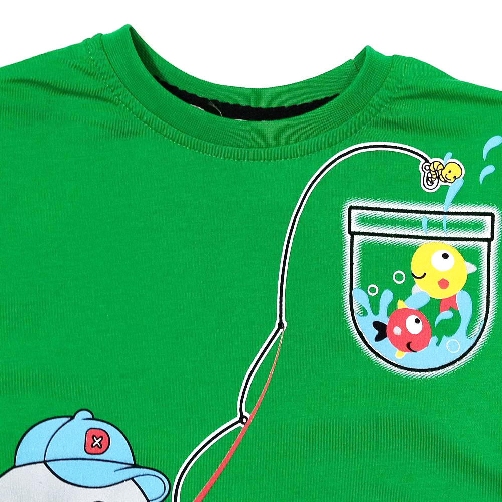 Футболка для мальчика прямого силуэта, с втачным коротким рукавом. Переднюю половинку украшает принт в морской тематике c надписью на английском языке "Кто ты? Море". Круглый вырез горловины с трикотажной резинкой нежно обрамляет шею. Горловина спинки внутри обработана настрочной планкой из киперной ленты контрастного цвета. Низ изделия и рукавов обработан швом вподгибку двойной строчкой.Размер 92: длина- 37 см, обхват груди- 59 см.