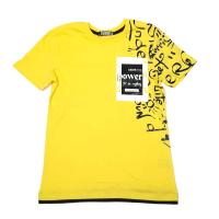 Футболка из х/б трикотажа, со стильным принтом-термотрансфером на полочке и рукаве. Горловина на манжете, с внутренней отделкой трикотажным кантом на спинке. Низ футболки с подворотом из трикотажа другого цвета.Размер 134: длина- 56 см, обхват груди- 77 см.
