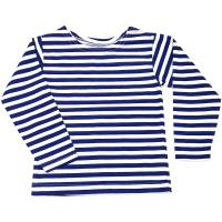 Фуфайка тельняшка для мальчика, из х/б трикотажа в ярко-синюю полоску.Размер 98: длина- 38 см, обхват груди- 55 см, длина рукава- 33 см.