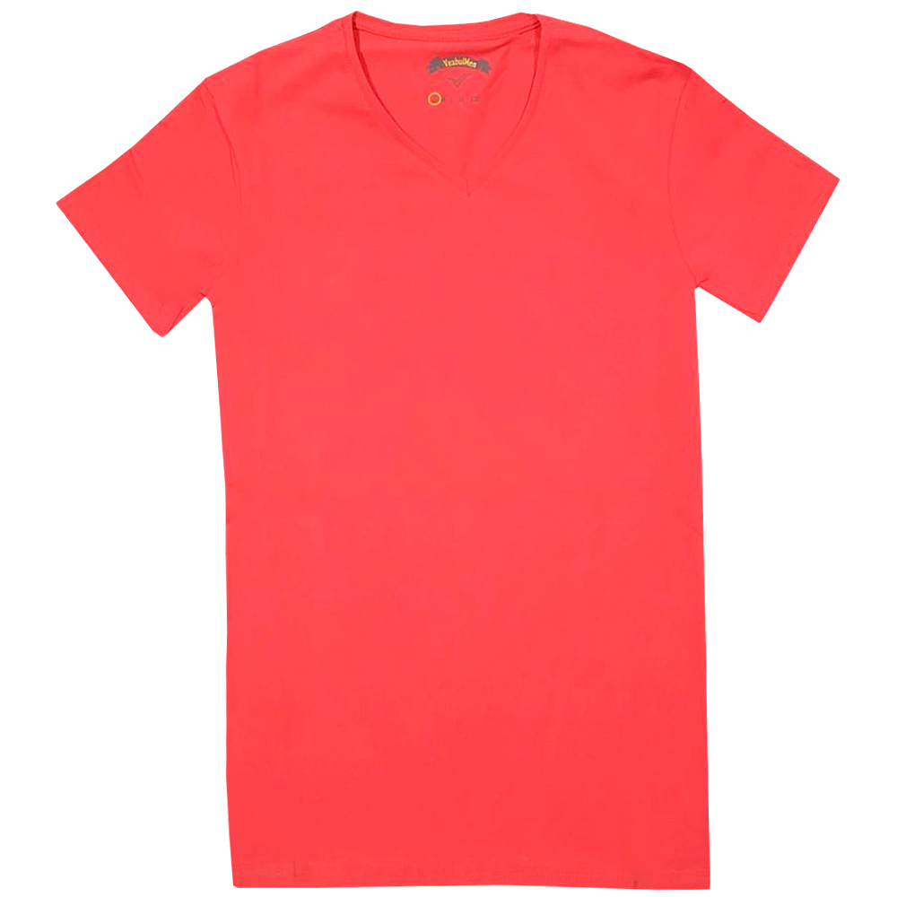 Футболка однотонная, с V-образным вырезом, из эластичного х/б трикотажа. Горловина на тонком манжете, с внутренней отделкой на спинке трикотажным кантом.Размер S: длина 63 см, обхват груди 84 см.