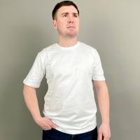 Футболка для мужчины, однотонная, из х/б трикотажа. Короткий рукав. Горловина на трикотажном манжете, с внутренней отделкой шва на спинке смесовой лентой.Размер 48 (рост 170): длина 70 см, обхват груди 102 см.
