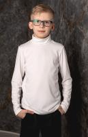Джемпер молочного цвета, из вискозы. Прямой крой. Воротник- стойка.Размер 122: длина- 42 см, обхват груди- 58 см, длина рукава- 39 см.
