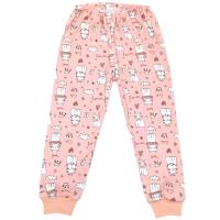 Брючки пижамные из х/б трикотажа с красочным принтом "Кошечка принцесса". В поясе на закрытой резинке, снизу на трикотажных манжетах в цвет изделия.Размер 62: длина- 38 см, обхват талии- 36-46 см.