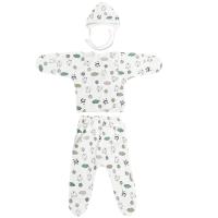 Комплект для новорожденных свободного кроя, состоящий из распашонки, ползунков и чепчика. Выполнен из хлопкового трикотажа футер, где внутренняя сторона покрыта мягким начёсом. Декорирован сказочным принтом героев мультфильмов "Винни Пух и Пятачок" по всей длине изделия.Распашонка с запахом. Рукав с варежкой антицарапкой. Застежка кнопки снаружи с левой стороны, изнутри с правой стороны. Наружные швы.