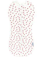 Пеленка-кокон из фактурного х/б трикотажа интерлок с принтом "Сердечки". Наружные швы. Горловина отделана трикотажным кантом в цвет основного полотна. Застежка молния по центру, с трикотажным предохранителем у горловины.Размер 56: длина - 51 см.