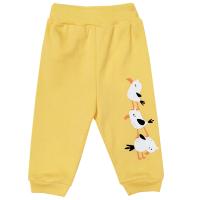 Брючки прямого кроя для новорожденных. Выполнены из мягкой и дышащей ткани интерлок. Левая штанина декорирована принтом "Птенчики". Модель швами вовнутрь, в поясе на закрытой широкой резинке. Низ брючин заканчивается трикотажным манжетом из основного полотна в тон.Размер 80: длина - 38 см, обхват талии - 35 - 40 см.